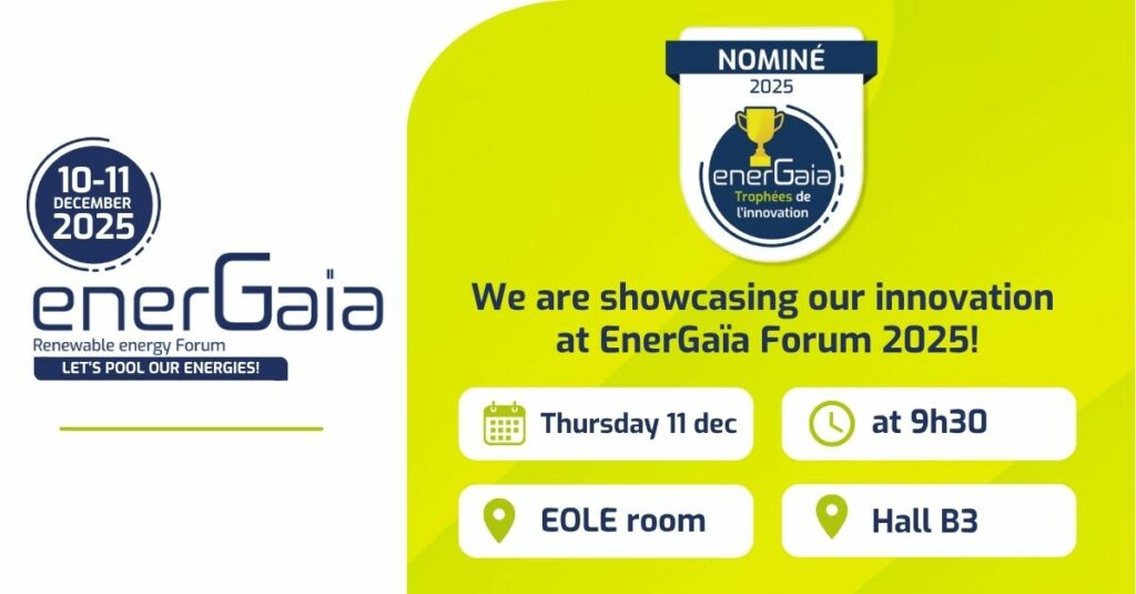 Notre projet sera présenté dans la Galerie de l’Innovation au cœur du Salon EnerGaïa, les 11 et 12 décembre 2025 au Parc des Expositions de Montpellier, et défendu lors d’un live pitch devant le jury et le public du Forum.